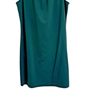 This Women's Lands' End green, sleeveless dress is available for purchase in size 1X (16W-18W). The dress' timeless and classic design enables year-round wear, as this dress may be worn as-is or paired with a blazer, cardigan, or shawl in the cooler months. This knee-length dress is constructed from a comfortable and stretchy blend of spandex, polyester, and rayon and offers a slimming fit. It is ideal for the modern woman looking for a versatile and stylish addition to her wardrobe.