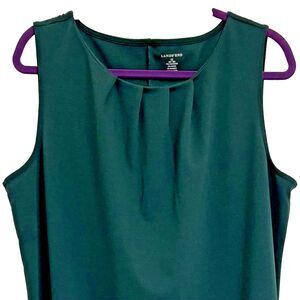 Lands’ End 1X (16W-18W) Green Sleeveless Dress, Round Pleated Neckline, NWOT
