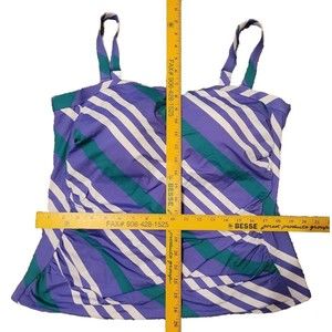 Lands End 20W Purple Swim Top Stripe Removable Straps Bandeau Tummy Control S416