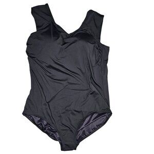 Lands End 22W Black One Piece Swimsuit Tummy Control Cap Sleeve X Back Lined Cup