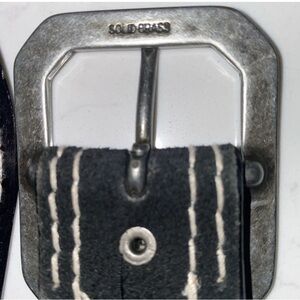 Lands End 28-30" Black Leather Suede Belt w/Decorative Stitching & Brass Buckle