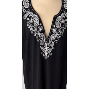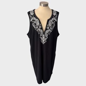 Elevate your wardrobe with this beautiful Lands' End dress! This black sleeveless dress features a lovely white embroidered neckline, adding a touch of elegance to your look. Made from 100% cotton, it offers comfort and breathability, perfect for any occasion.