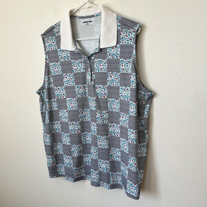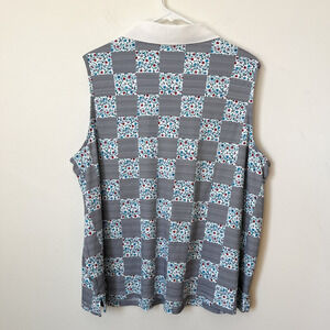 Lands’ End 2X Sleeveless Polo Shirt Patchwork Mixed Print Womens Blue Summer