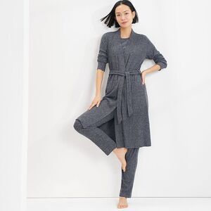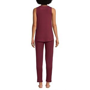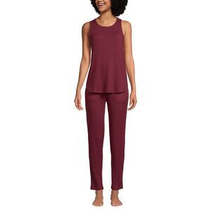 Land's End Three piece Stretch Pajama Set Robe Sleeveless Top Long Pants Grey Melange or Rich Burgundy in Various Sizes Below
