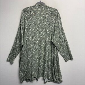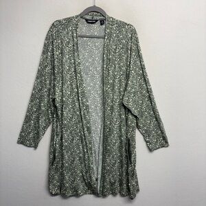 Land's End 3x Floral Sheer open cardigan sweater gray cream rayon stretch