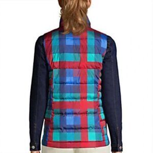 Lands End 600 Down Puffer Vest Deep in Sea Navy Plaid.