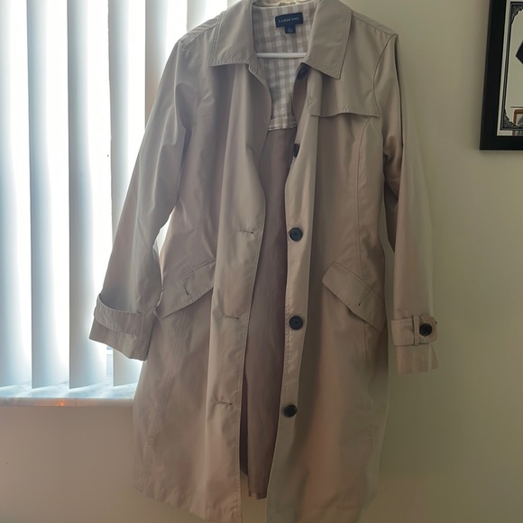 This is a nice lands end rain 🌧 coat 🧥 there’s a couple spots it’s in the pictures but is not visible while wearing., in great condition..