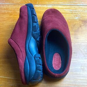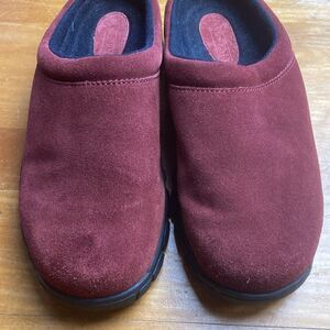 Lands End 86166 Womens Size 7B Dark Red Suede Leather Slides Clogs Slippers