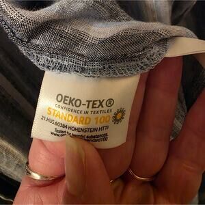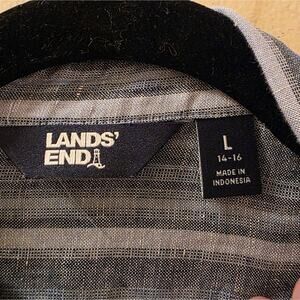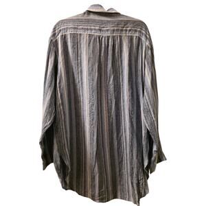 Lands End Womens 100% Linen Striped Button Up Shirt Long Sleeve Oversized Sz L Oeko-Tex