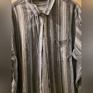 Lands End 90s Womens 100% Linen Striped Button Up Shirt Long Sleeve Oeko-Tex L