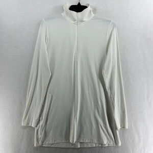 Lands' End Active Shirt Womens Sz S White Mock Neck 1/4 Zip Long Sleeve Pockets