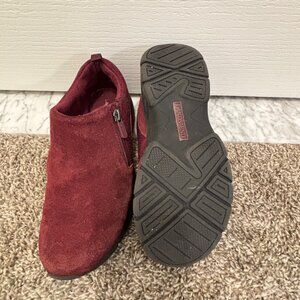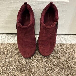 Gently worn All Weather Suede Slip on booties. Small side Zipper. Burgundy, Size 7.5