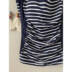 Lands End Bandeau Tankini Deep Sea Stripe Swim Top Padded Square Neck NWT Beach