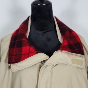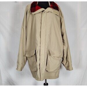 Lands End Barn Coat Mens XL Tan Zip Made in USA Flannel Lined Jacket Outerwear