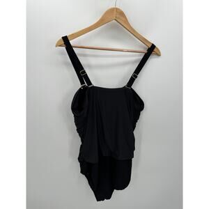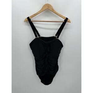 Lands' End Bathing Suit Women 18W Black Ruched One Piece Modest Removable Straps