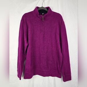 Lands' End Bedford Ribbed Quarter Zip Magenta Pullover Sweater Men's sz L