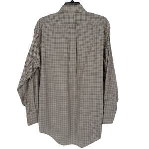 Land's End Beige Neutral Gingham Plaid Check Button Down Dress Shirt Men’s 15.5