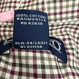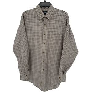 Land's End Beige Neutral Gingham Plaid Check Button Down Dress Shirt Men’s