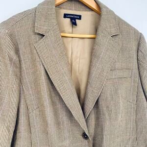 Lands End Beige Plaid Women Wool Cashmere Blazer Jacket 22W Preppy Twee Academic