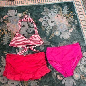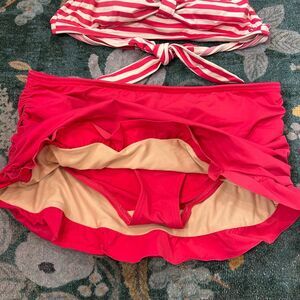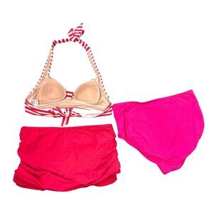 Lands’ End women’s Bikini Swimsuit Skirt Skort Bottoms Pink Stripe Bathing Suit 6 4 Swim 2 piece matching set bundle