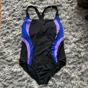 Lands End Black Blue Womens One Piece Size 10 Swimsuit Bathing Suit Summer