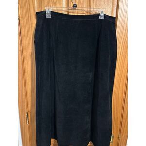 Classic black corduroy skirt in size XL, approximately 35” inches long. Button-front closure with side pockets, perfect for work wear, career, casual fall & winter events & pair with boots.
