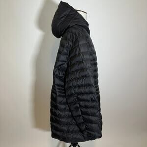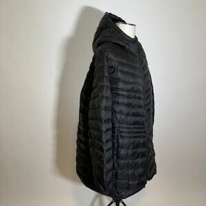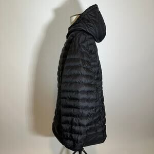 Lands End Black Down Long Puffer Coat Jacket Hooded