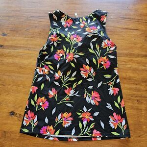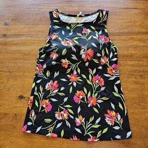 Lands End Black Floral High Neck Tankini Swim Top Size 6L Long Tall Modest Pool