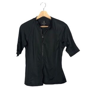 Lands' End Black Full Zip Cycling Athletic Short Sleeve Top