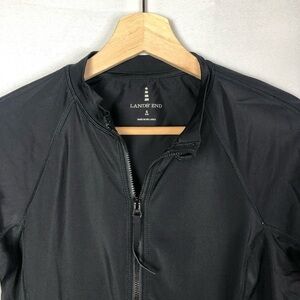Lands' End Black Full Zip Cycling Athletic Short Sleeve Top S 6-8