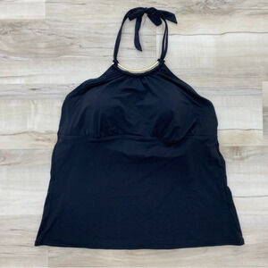 Lands’ End Black High Neck Halter top tankini Sz 18