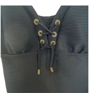 Land’s End Black Lace-Up Ribbed Modest Tankini Size 4