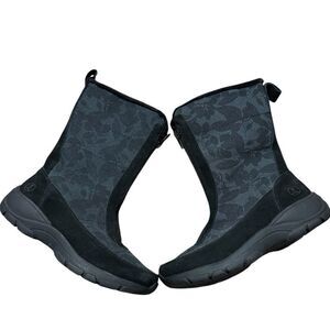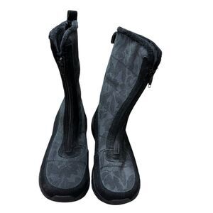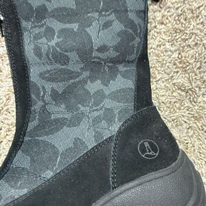Lands’ End Black Winter Boots, Step out in style with these chic black leaf patterned boots. Perfect for any occasion, these boots offer both comfort and elegance, Front zipper, soft velvet lining, size 6.5