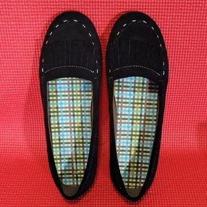 Lands End Black Leather Moccasin Slip On Loafers With Tassles - 380802 - Size 9H