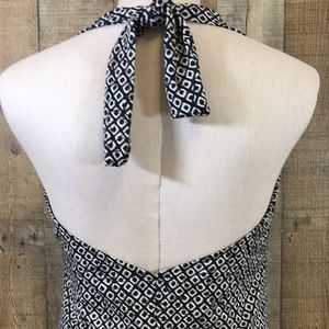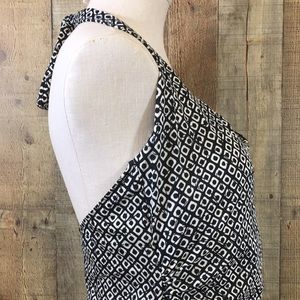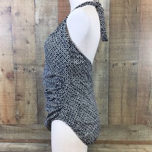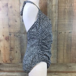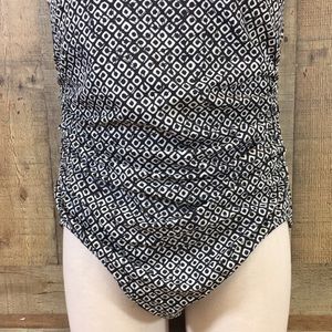 Lands End Black Monogram Print One Piece Swimsuit Womens 16 Underwire Halter