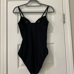 Lands' End Black One Piece Swimsuit with Sweetheart Neckline