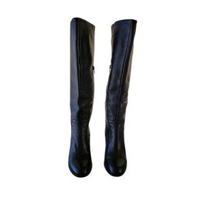 Lands’ End Black Pebbled Leather Knee-High Heeled Boots Women’s 7.5