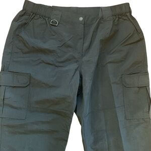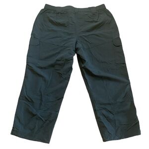 Lands’ End Black Performance Hiking Outdoor Travel Cargo Travel Pants Size 1X. Like new condition. Snap front with elastic at sides of waist. Side Cargo pockets and Velcro closure back pockets. Hidden inside key pocket at waist. Water repellent.