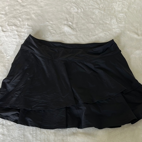 This black swim skirt from Lands' End is designed with a tiered skirt, elastic waistband