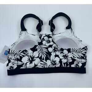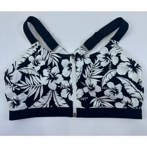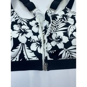 Lands’ End Black & White Floral Zip Front Bikini Vest Top Size Small NWT