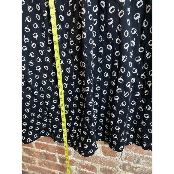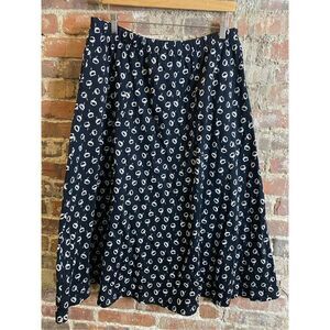 Lands’ End Black White Flower Cotton Midi A Line Skirt Size XL