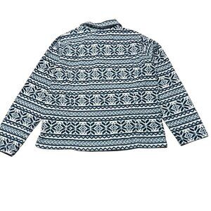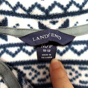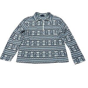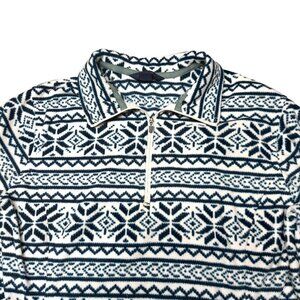 Lands' End Black & White Nordic Fair Isle Print Quarter Zip Fleece Pullover