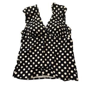 Lands’ End Black White Polka Dot Swim Tankini Top Size 16 Flattering Fit