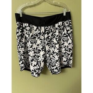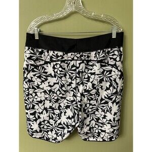 Lands' End Black and White Floral Swim Shorts