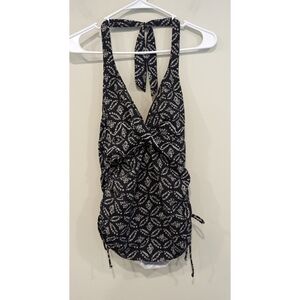 Excellent pre-owned condition. Lands' End Black and white halter neck swimsuit top with Ruched sides. Size 6