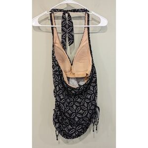 Lands' End Black and White Halter Neck Ruched Side Tankini Top Size 6