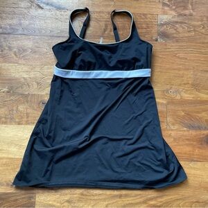 Lands' End Black and White Swim Dress Tankini Top size 14