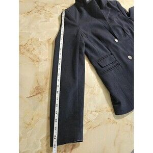 This Lands' End blazer is a versatile piece that can be worn for a variety of occasions, including travel, weddings, parties, and workwear. The navy blue color and solid pattern make it a classic and timeless addition to any wardrobe. The blazer has a mid-length coat with long sleeves and a two-button sleeve button style.