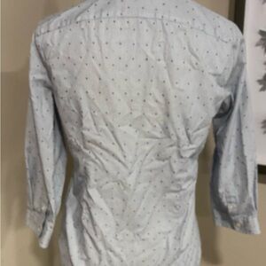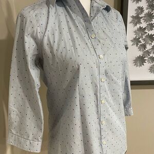 Lands End light blue, pinstripe and colored polka dotted button up Blouse.