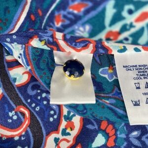 Lands End Blouse Womens 20W Blue Paisley Print Long Sleeve Button Up Shirt Top
